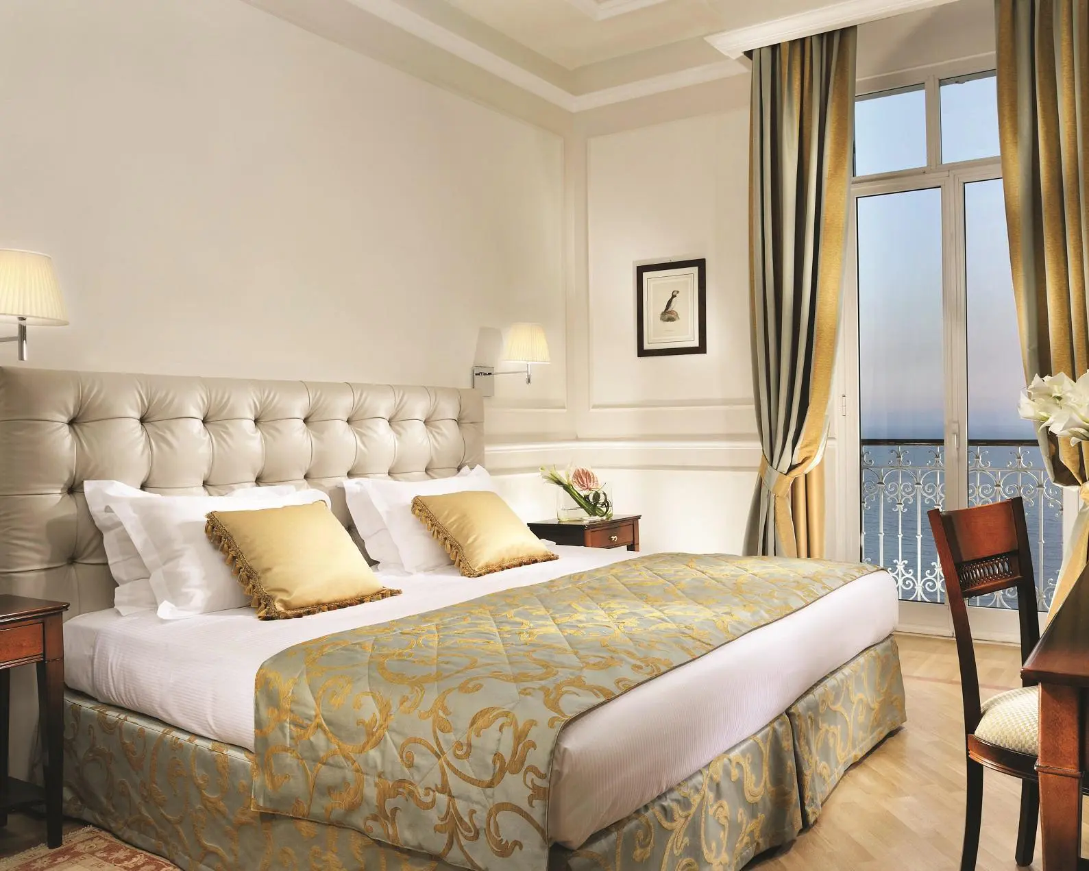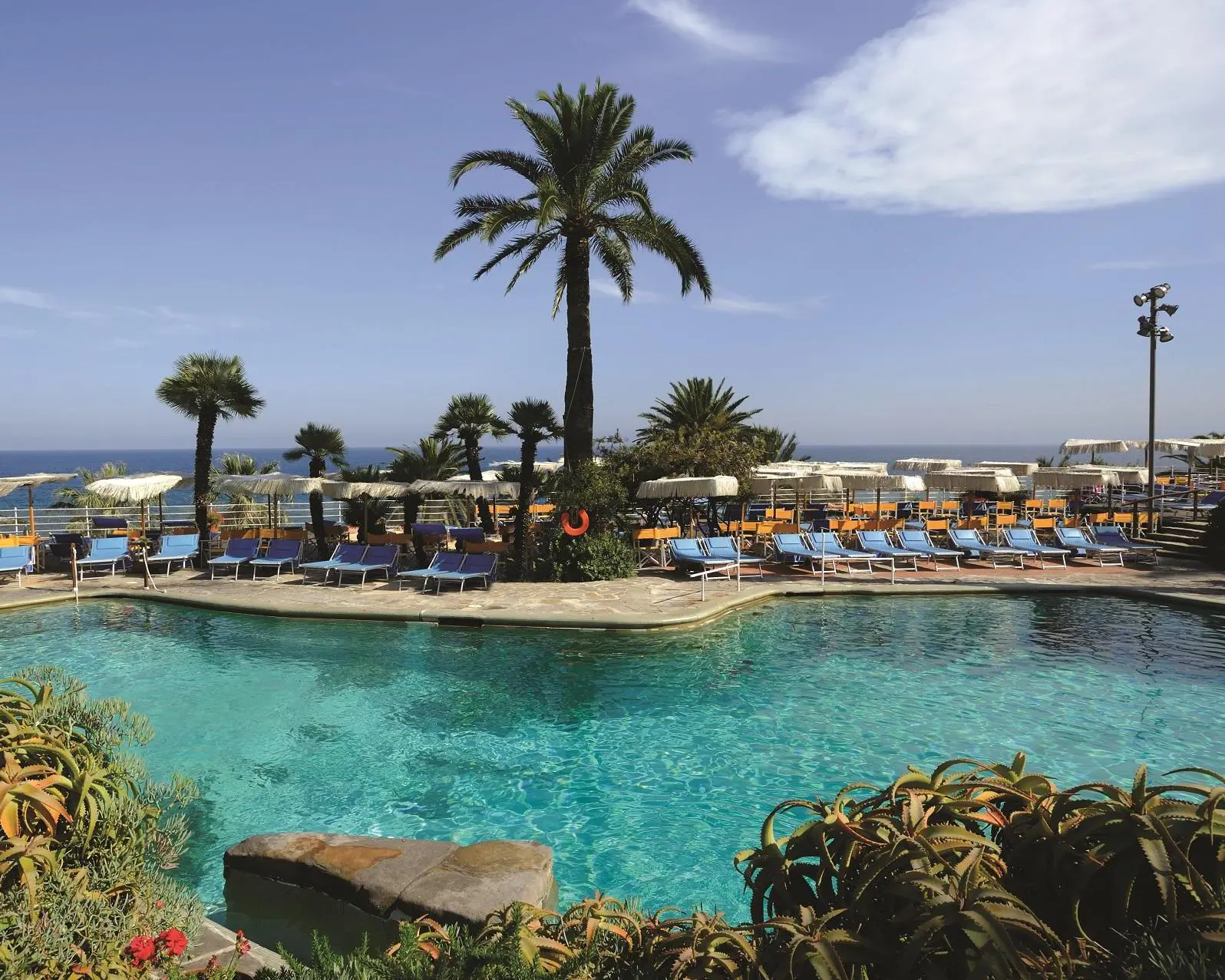 Since 1872 the majestic Royal Hotel Sanremo has been a real institution on the Riviera dei Fiori, the Ligurian Riviera. Located on the seafront, surrounded by a beautiful park, this ancient building is a five-minute walk from the famous Sanremo’s Casino and from the city center, in a mind-blowing setting. As every Grand Hotel from the late XIX century, this building features elegant lounges, bridge rooms and game rooms, a cigar room, two bars and three restaurants. Apart from these facilities, the hotel is equipped with all the modern facilities such as a gym, a Spa and a large heated seawater pool (f. April to October). The generously-sized sumptuous rooms, some of which come with a sea view, are decorated with a mixture of modern furnishings and antiques. At the restaurants the cooks will spoil you with their local, Mediterranean and international cuisine by the swimming pool or at the elegant Capriccio Gourmet Restaurant. In summer a panoramic terrace is also available. Before dinner, you can enjoy a drink at the bar overlooking the park, the sea and the pool. The venerable golf course in Sanremo, the Golf degli Ulivi, is about 15 minutes from the hotel. If you are in the mood for a 30-minute drive, you shouldn’t miss out on a game at the Golf Club Monte Carlo in La Turbie.