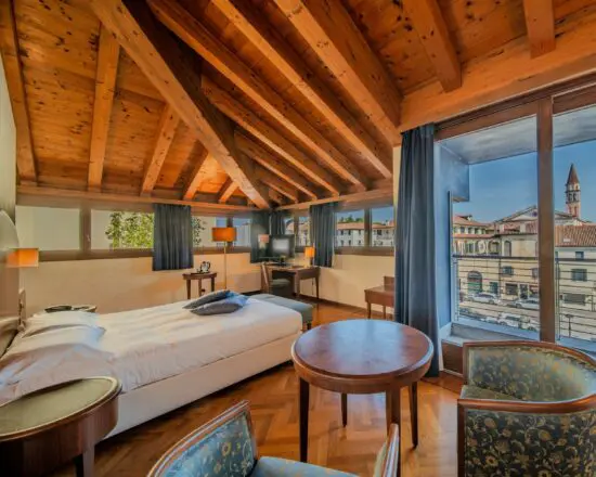 16.03.–20.03. — 4 Übernachtungen, DBL Standard room, ÜBERNACHTUNG MIT FRÜHSTÜCK Das Hotel alla Torre, ein elegantes Hotel neben dem berühmten Uhrturm im Herzen von Castelfranco Veneto, befindet sich in einem prestigeträchtigen Adelspalast aus dem 16. Jahrhundert, der liebevoll renoviert und erweitert wurde, wobei sein historischer Charakter erhalten blieb und gleichzeitig der Komfort moderner Gastlichkeit geboten wird. Jedes Zimmer ist im klassischen Stil eingerichtet. Warme Farbtöne, traditionelle Möbel und durchdachte Details schaffen eine gemütliche, elegante Atmosphäre – perfekt zum Entspannen nach einem Tag auf dem Golfplatz. Mit dem nur 6 km entfernten Golfclub Cà Amata und den ebenfalls leicht erreichbaren Golfclubs Cà della Nave und Condulmer ist das Hotel ideal gelegen und bietet einen hervorragenden Ausgangspunkt für Golfbegeisterte. Ob Sie einen gemütlichen Golfurlaub, einen romantischen Kurzurlaub oder eine Kulturreise suchen, das Hotel alla Torre bietet Ihnen einen unvergesslichen Aufenthalt, bei dem Geschichte, Eleganz und Komfort in perfekter Harmonie miteinander verschmelzen.