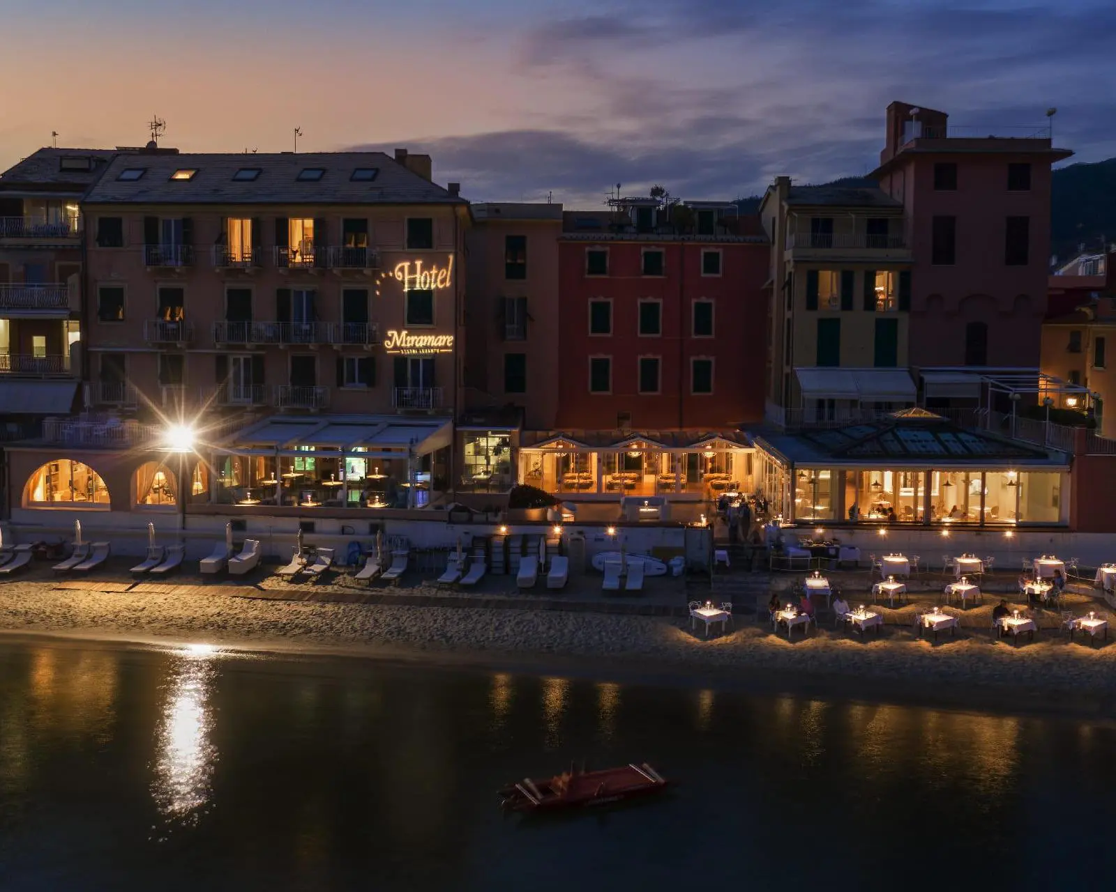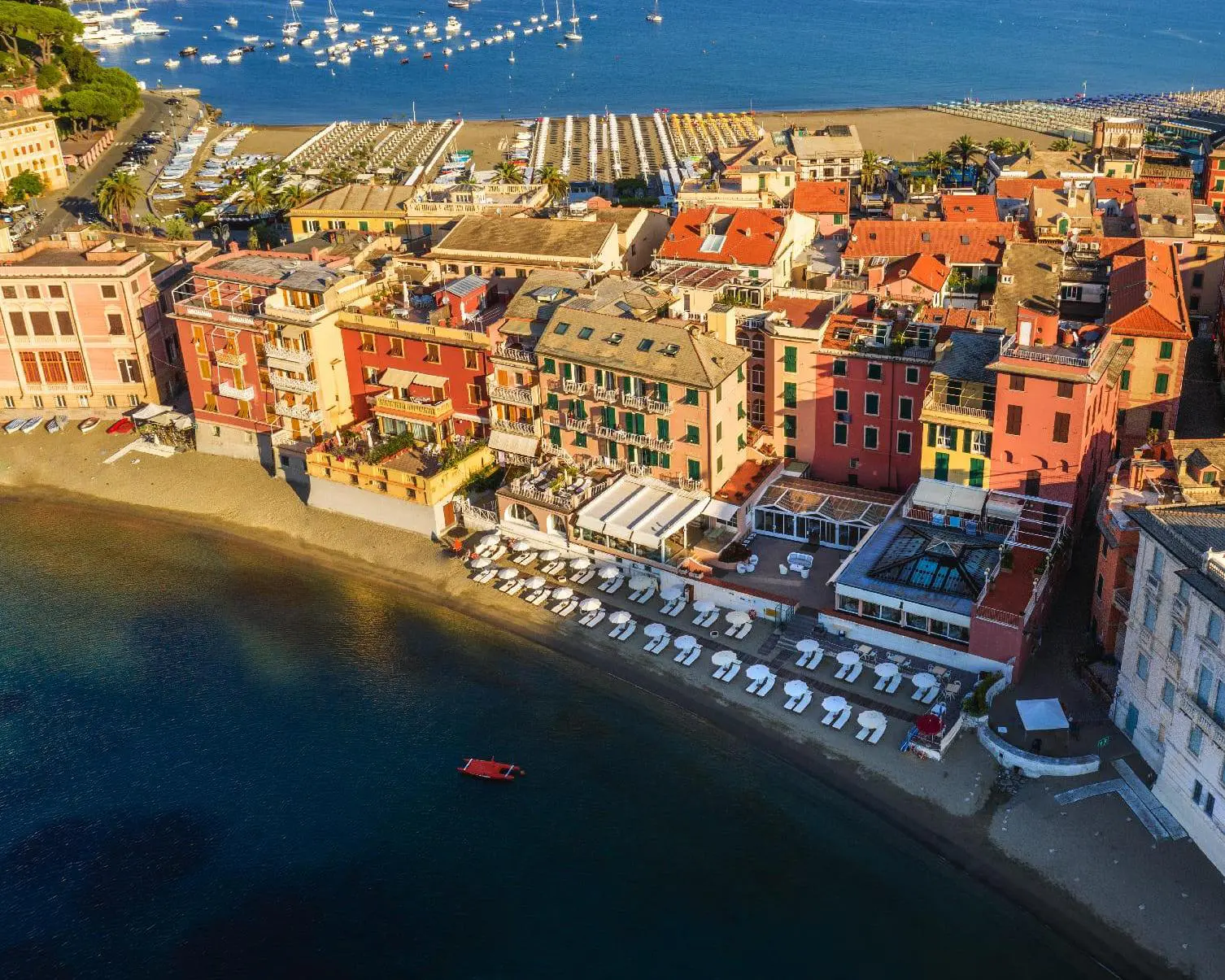 Situato tra il centro storico della città e la spiaggia della Baia del Silenzio, l’hotel è a pochi passi dalle strette strade pedonali e dalla pittoresca penisola – il cuore di Sestri – con palazzi storici, chiese medioevali e barocche, ville liberty con magnifici giardini.