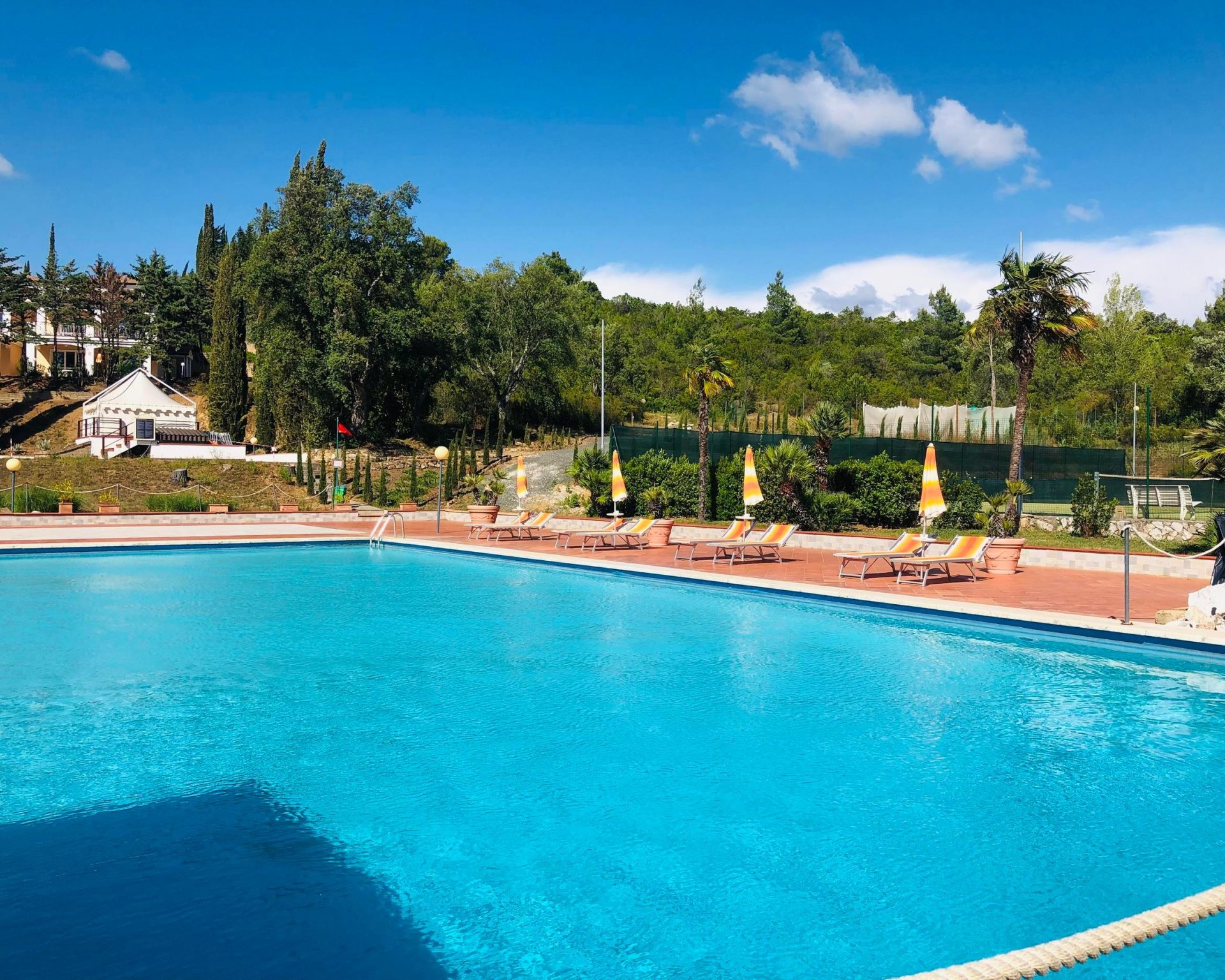 Il complesso è poi arricchito da due piscine all’aperto, due campi da tennis e un parco giochi per i più piccoli. I due ristoranti situati all’interno offrono piatti tipici della cucina toscana e italiana e la nuova cantina di vini garantisce ai clienti più esigenti un’esperienza unica nel suo genere.