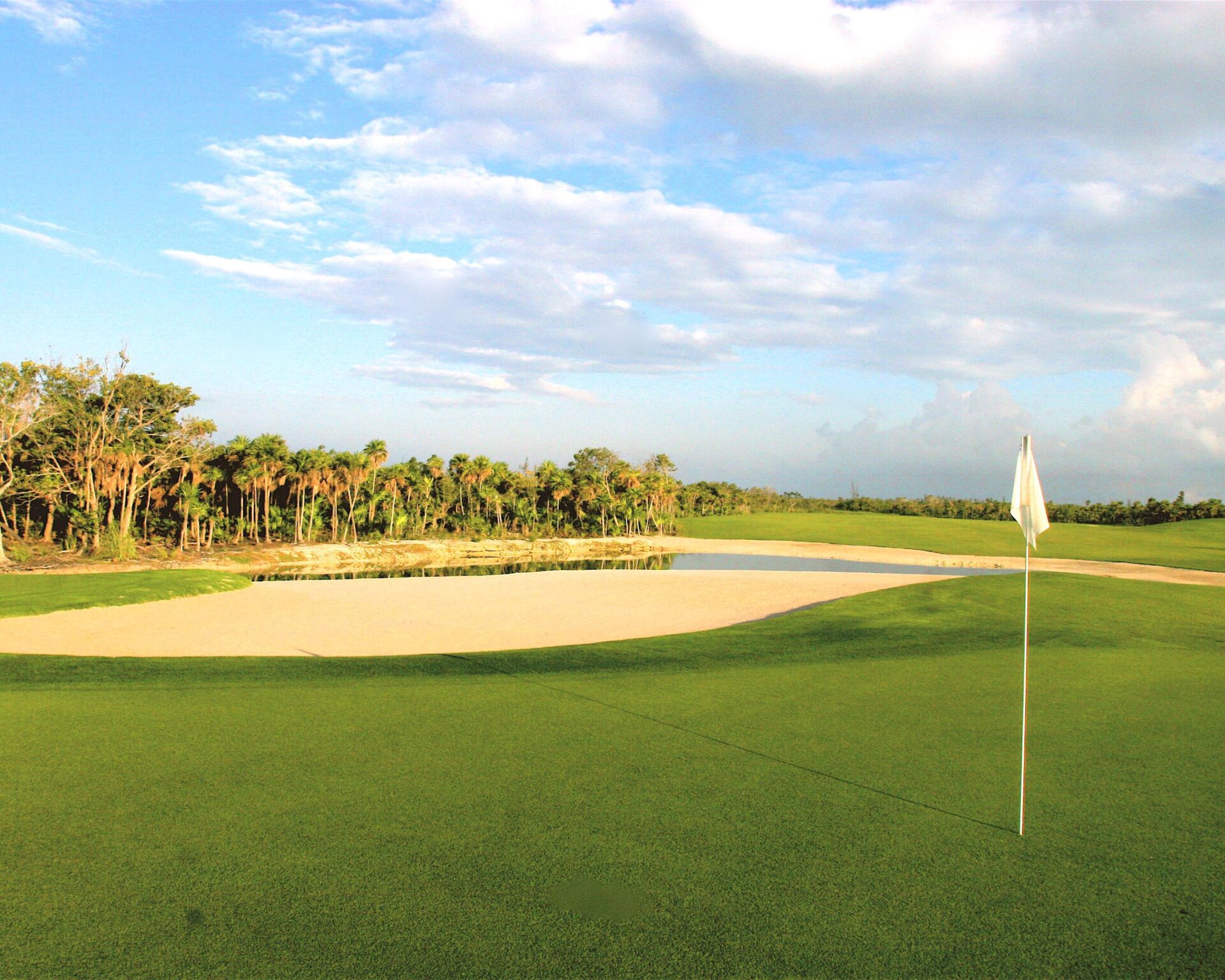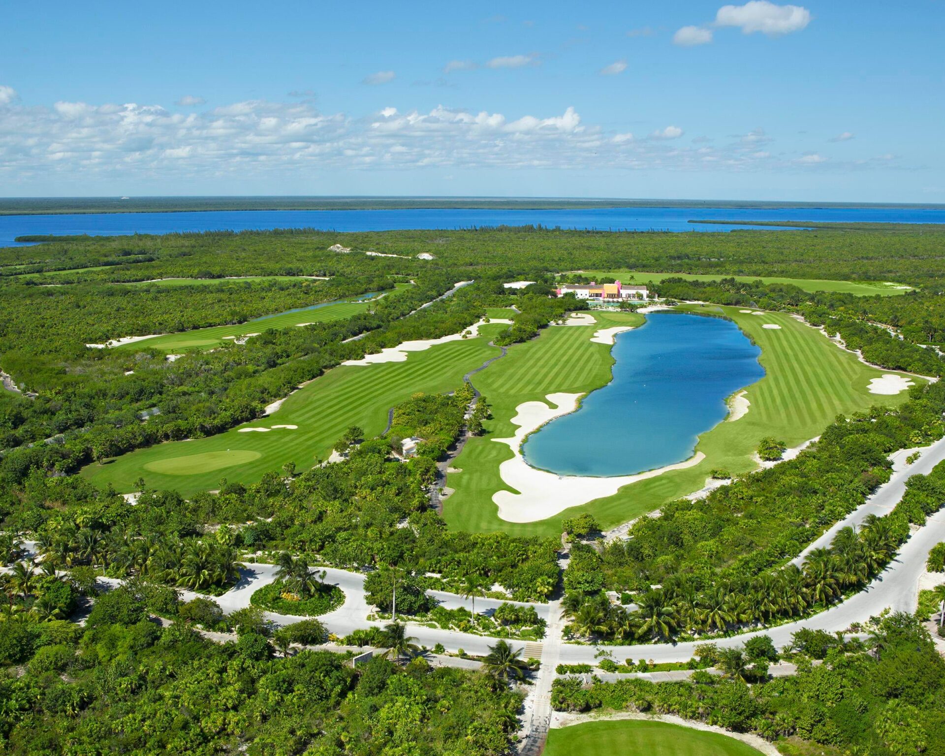 A nord della zona turistica di Cancun si trova il Playa Mujeres Golf Club, un campo a 18 buche progettato da Greg Normal. Di aspetto pianeggiante e con ostacoli d’acqua, è stato concepito nel pieno rispetto della fauna selvatica e dell’abbondante flora sensibile all’ambiente che circonda i 375 ettari. Le prime nove si snodano tra mangrovie e canneti adiacenti al lago Chachmuchuchuch. Le back nine, invece, portano verso l’oceano tra dune di sabbia corallina con vista sul mare turchese e Isla Mujeres sullo sfondo. Senza dubbio un grande campo da golf, vario e giusto dove gli alisei richiedono una precisione millimetrica e sfidano anche i giocatori più esperti. Come dettaglio, la 6ª buca, la più corta del circuito, ha un alligatore residente che vi osserverà… dimenticatevi di raccogliere palline vaganti vicino alla laguna.