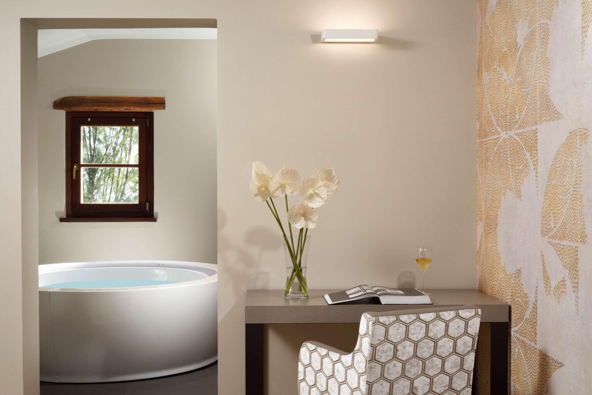 Le camere sono eleganti, silenziose e spaziose. Tutto sembra ben studiato, di alta qualità, ma non sovraccarico. Dopo la partita si va direttamente nell'area spa, una delle più grandi dell'Umbria. Piscine interne ed esterne, diverse saune, aree relax con vista panoramica. Proprio quello che ci vuole per rilassare le gambe dopo 18 buche.